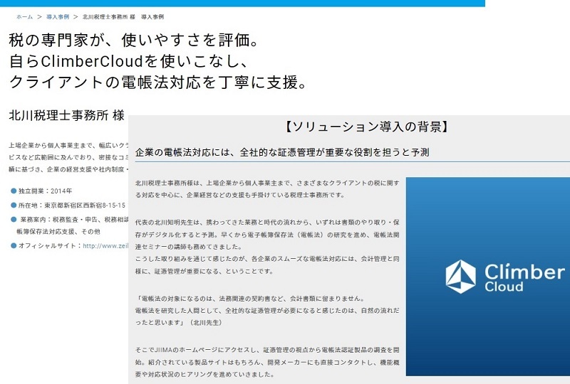 バックオフィス業務支援ソリューション「ClimberCloud」サイトにて、北川税理士事務所様の導入事例を掲載開始いたしましたのでご案内いたします。